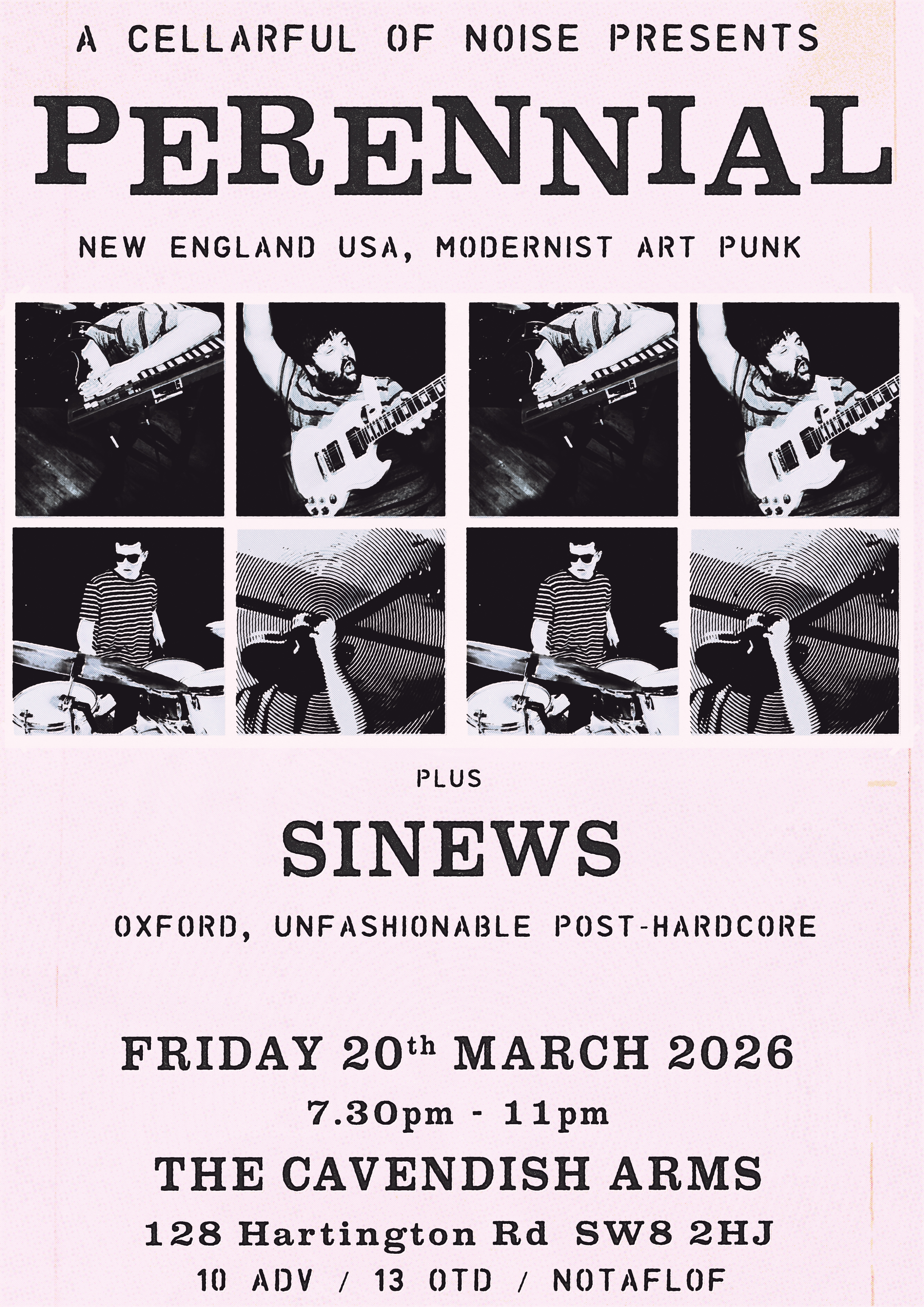 PERENNIAL is an art punk three-piece from New England. The band’s sound – built from the sharp minimalism of guitar, electric organ, and drums – is a kinetic collage of mod pop, 90s post-hardcore, post-bop jazz and 60s soul. The band’s ferocious live show – quick and electrifying – has already become the stuff of DIY legend, short bursts of manic energy with barely a moment to catch your breath: not to be missed. Perennial’s new album, ‘Art History’ is available everywhere that chic modernist punk is sold.